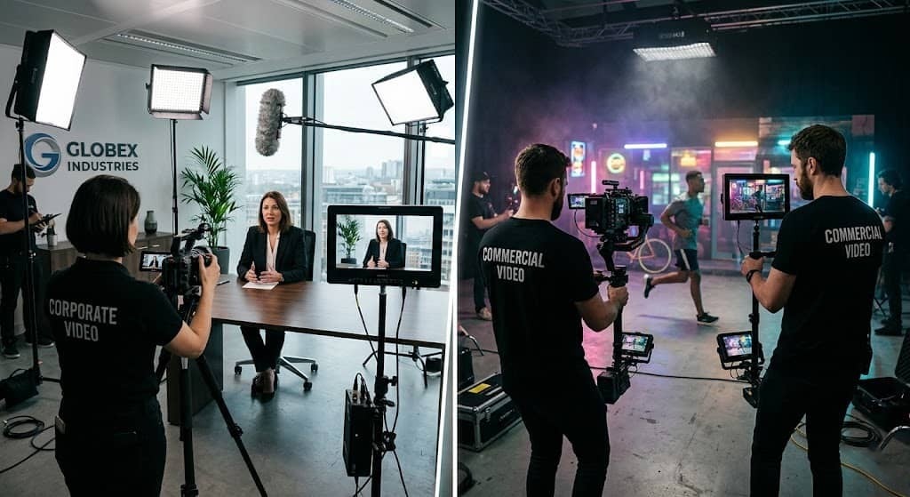 Στον κόσμο της παραγωγής βίντεο, υπάρχουν διάφοροι τύποι περιεχομένου που εξυπηρετούν διαφορετικούς σκοπούς και στοχεύουν σε διαφορετικά κοινά. Δύο από τους πιο διαδεδομένους τύπους είναι το commercial video και corporate video. Παρά το γεγονός ότι και οι δύο έχουν στόχο την επικοινωνία με το κοινό, οι διαφορές τους αφορούν κυρίως τον σκοπό, την αισθητική, τον ρυθμό, το